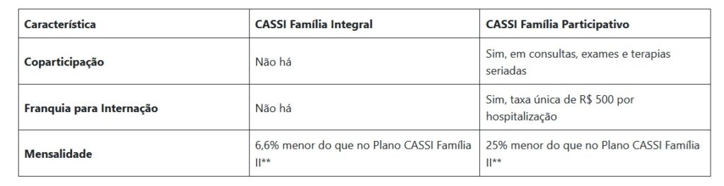 - Para o Plano CASSI Família Participativo comparado ao CASSI Família II com o reajuste de 2025.